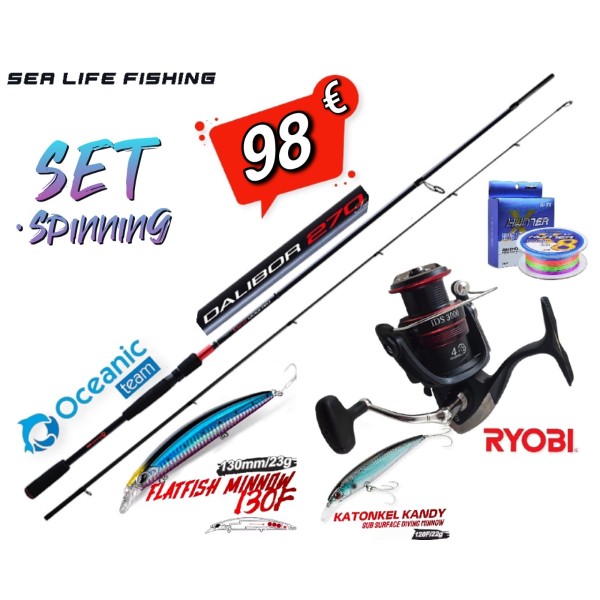 Το Σετ Περιλαμβάνει:-Καλάμι NOEBY LEISURE LIGHT SPIN -Μηχανισμό RYOBI VIRTUS 1000 / 2000-Νήμα ABA HUNTER 8x 150m multicolor-1 θήκη τεχνιτών Sea