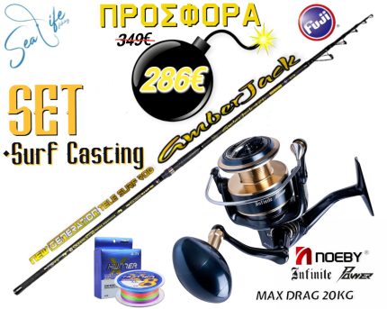 Το Σετ Περιλαμβάνει:-Καλάμι Oceanic Amberjack 4.20m C.W: Max 200gr-Μηχανισμός NOEBY INFINITE POWER 8000 / 10000 Max Drag 20kg-Νήμα ABA HUNTER