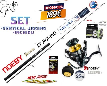Το Σετ Περιλαμβάνει:-Καλάμι NOEBY LT Jigging TORAYCA CARBON 1.91m C.W: Max 150gr / Max 200gr-Μηχανισμός NOEBY INFINITE POWER 8000 /10000 Max Drag
