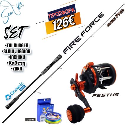 Το Set Περιλαμβάνει:-Καλάμι Oceanic Fire Force 632MH 1.89m / c.w:60-180gr-Μηχανισμός Oceanic Hermes 20R-Νήμα ABA HUNTER 4x 300m Multicolor Καλάμι Oceanic