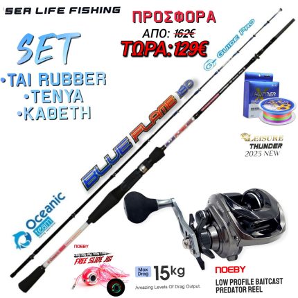 ΠΡΟΣΦΟΡΑ Σετ Ψαρέματος Tai Rubber Καθετής Tenya Καλάμι Oceanic Aegean 1,95m C.W 40-150gr και Μηχανισμός NOEBY NONSUCH PRO Max Drag 8kg