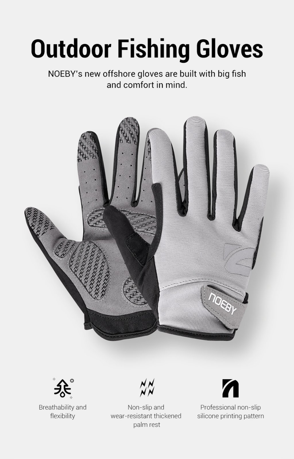 Γάντια Ψαρέματος NOEBY Full Finger Color: Grey / Size: M / L / XL