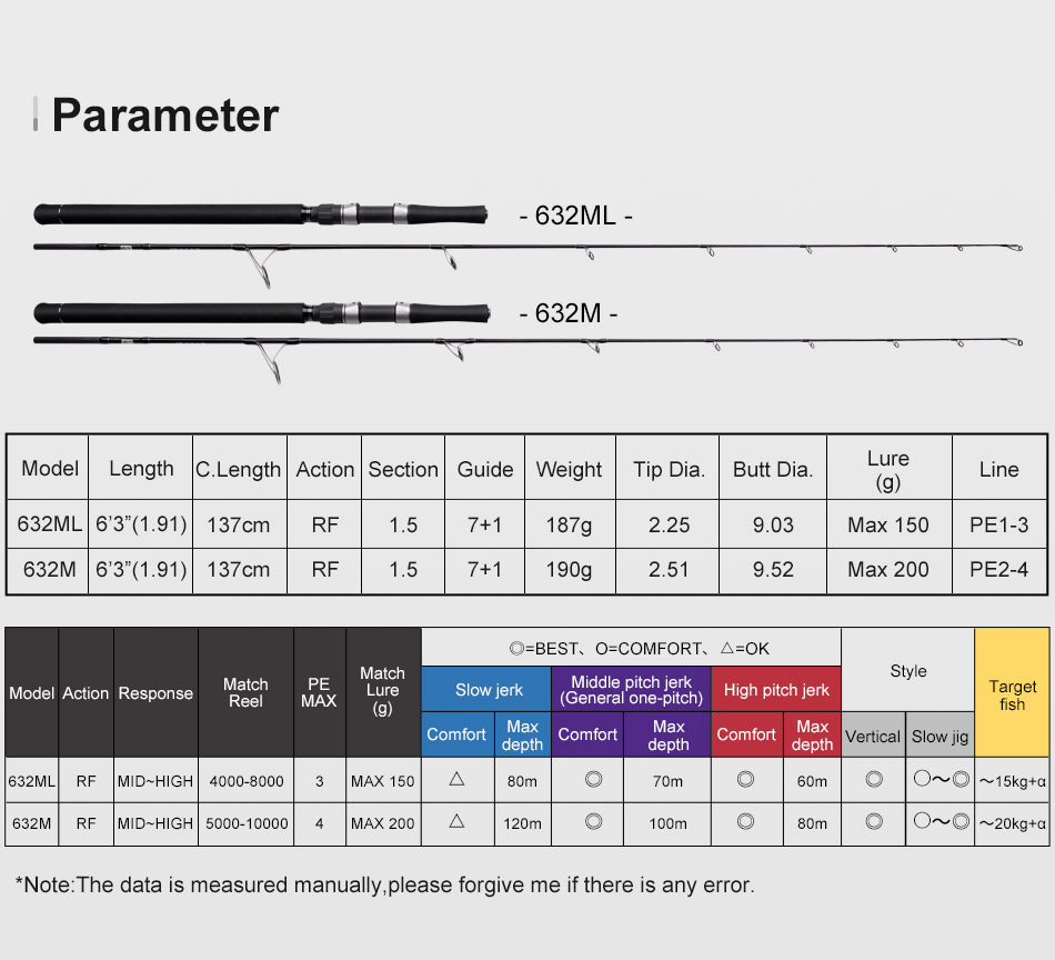 Καλάμι ψαρέματος Noeby K5 Leisure Jigging Rod 1.83m Jig Fishing Rod c.w:120-260g/200-500gr Big Game for Tuna Marlin