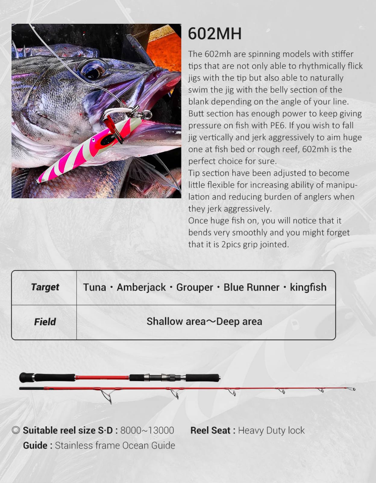 Noeby K5 Leisure Jigging Rod 1.83m Jig Fishing Rod c.w:120-260g/200-500gr For Big Game for Tuna Marlin