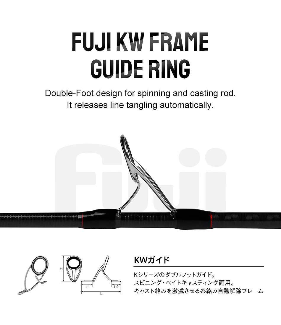 5. FUJI KW frame Guide Ring, double-foot design for spinning and casting rod, it releases line tangling automatically.