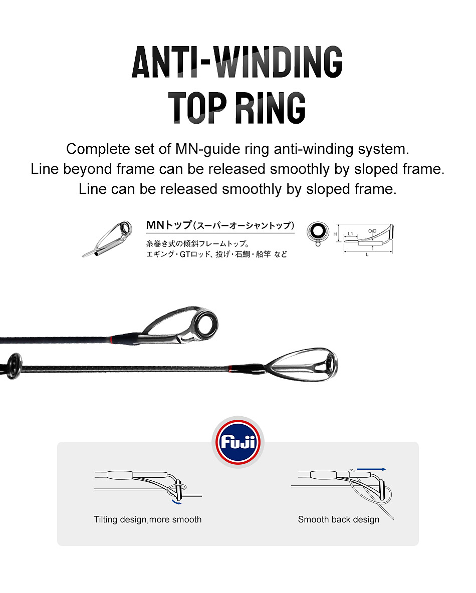 2.Anti- winding top ring, complete set of MN-guide ring anti-winding system, line beyond frame can be released smoothly by sloped frame, line can be released smoothly by sloped frame.