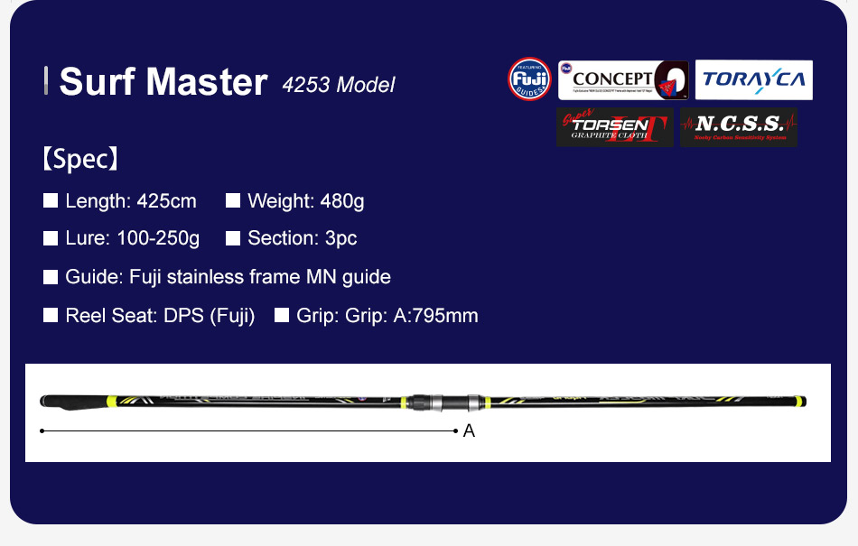 Καλάμι Ψαρέματος Surf Casting NOEBY Surf Master Hybrid 4.25m c.w: 100 – 250 gr