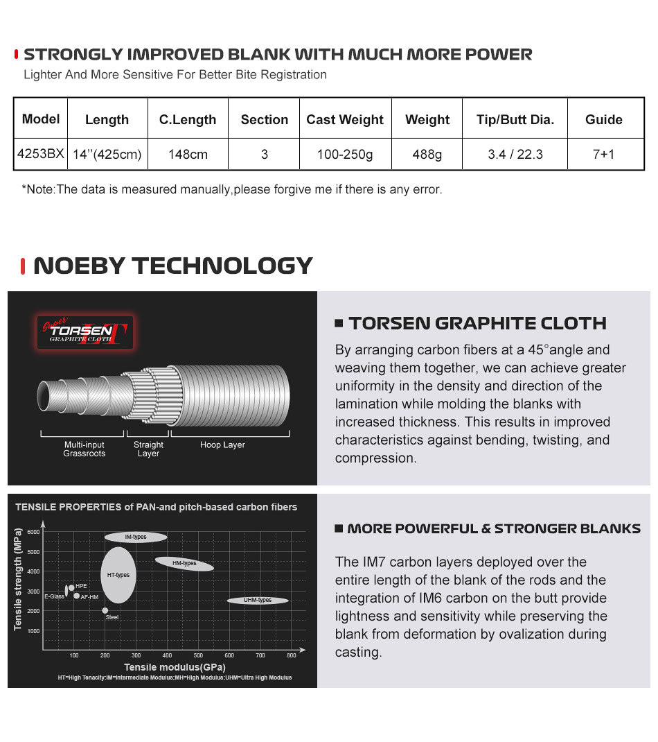NOEBY INFINITE Surf Casting Rod 99% Carbon / 4.28m / C.W: 100-260gr / 5+1 Fuji Guides