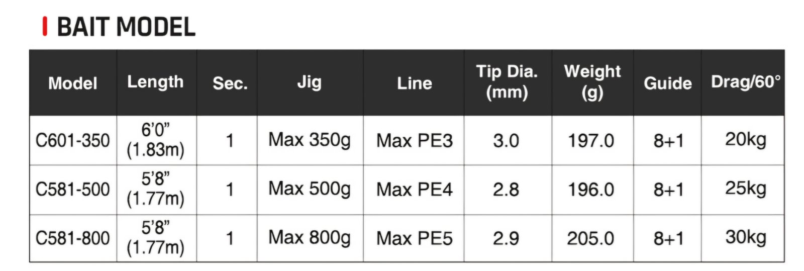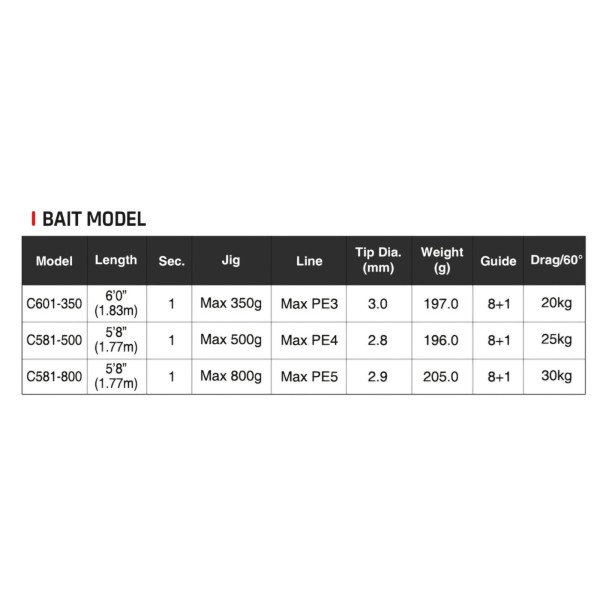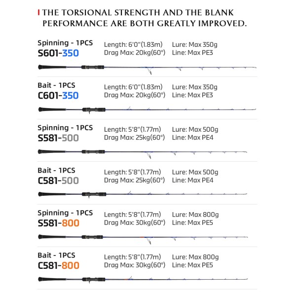 NOEBY Voyager Slow Pitch Jigging 1.83m Max 350gr / 1.77m Max 500gr / 1.77m Max 800gr