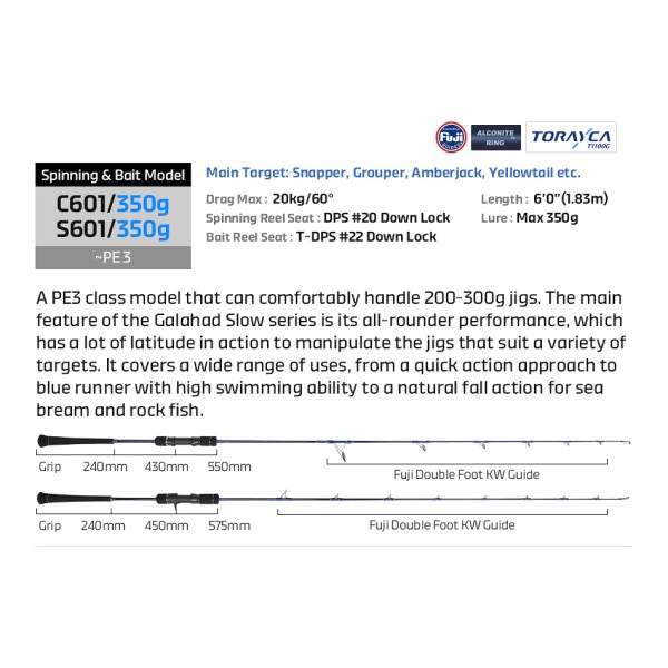 Καλάμι NOEBY Voyager Slow Pitch Jigging 1.83m Max 350gr / 1.77m Max 500gr / 1.77m Max 800gr Fuji Alconite Guides 100% Toray Carbon Japan