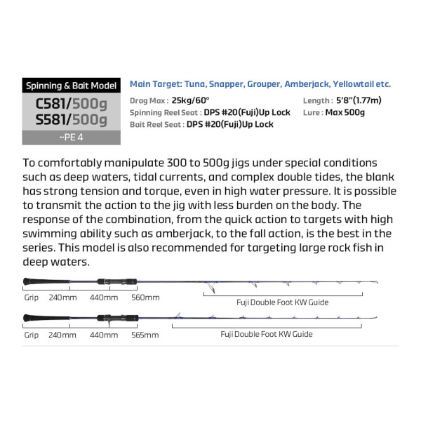 Κατάλληλο να ανταπεξέλθει σε μεγάλα θηράματα όπως Μεγάλα Μαγιάτικα – Τόνους – Μεγάλα Μαύρα (ροφούς – σφυρίδες – Βλάχους) κ.α