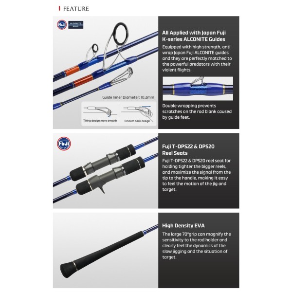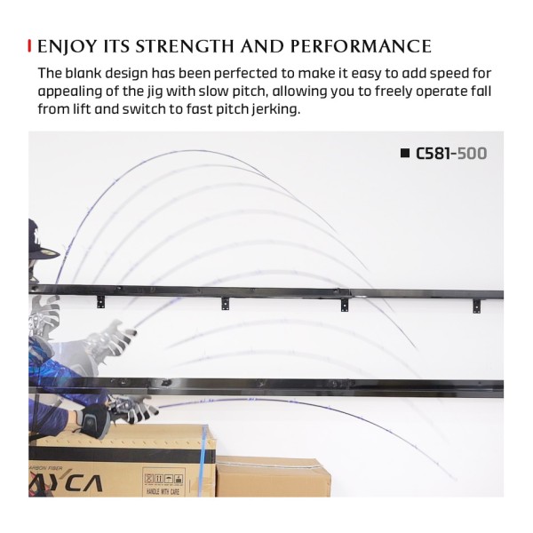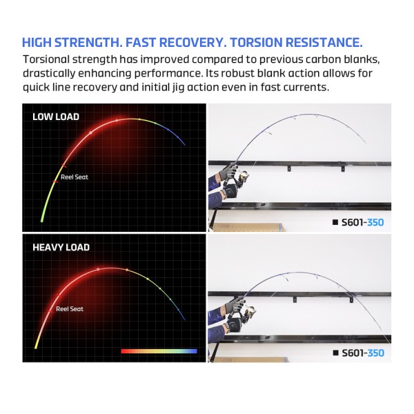 Η προοδευτική δράση επιτρέπει διαφορετικούς ρυθμούς και ταχύτητες στα jerking, κάνοντάς το εξαιρετικά αποδοτικό σε διαφορετικά βάθη και συνθήκες. Παράλληλα, το ισχυρό butt section εξασφαλίζει μεγάλη παραβολή και σταθερότητα κατά τη μάχη, χωρίς απώλεια δύναμης.