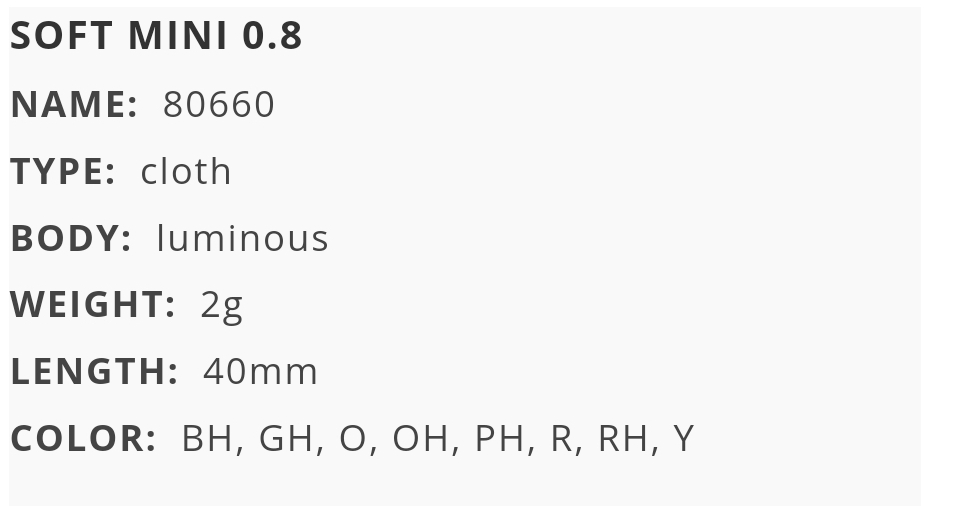 Η DTD Soft Mini είναι μια μικρή, ευέλικτη καλαμαριέρα που σχεδιάστηκε για να προσφέρει εξαιρετικά αποτελέσματα σε ποικίλες συνθήκες ψαρέματος.Κατασκευασμένη από μαλακά και ανθεκτικά υλικά, προσφέρει φυσική κίνηση στο νερό, μιμούμενη την αργή και ομαλή κίνηση ενός μικρού ψαριού, γεγονός που την καθιστά ιδανική για την προσέλκυση καλαμαριών και άλλων θηρευτών.Το σώμα της διαθέτει UV χρωματισμούς και φωσφορίζει στο σκοτάδι, ενώ το μικρό της μέγεθος είναι ιδανικό για ψάρεμα σε ρηχά νερά ή περιοχές με αυξημένη πίεση ψαρέματος.Η DTD Soft Mini είναι η τέλεια επιλογή για ψαράδες που αναζητούν μικρές και διακριτικές καλαμαριέρες με μεγάλη αποτελεσματικότητα.