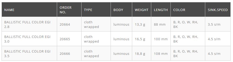 Ballistic Full Color Egi is newest squid jig that combines catching ability and efficiency of Full Color Oita, with long casting ability of our ballistic models. Fabric is strong, more resistant on bites, it has texture that reminds on fish scale and it is thick. This thickness doesn’t allow light to go through and it decreases glow effect, but on the other side, fabric ‘drinks’ sea and product becomes more heavy after few throws and more ideal for long casting.