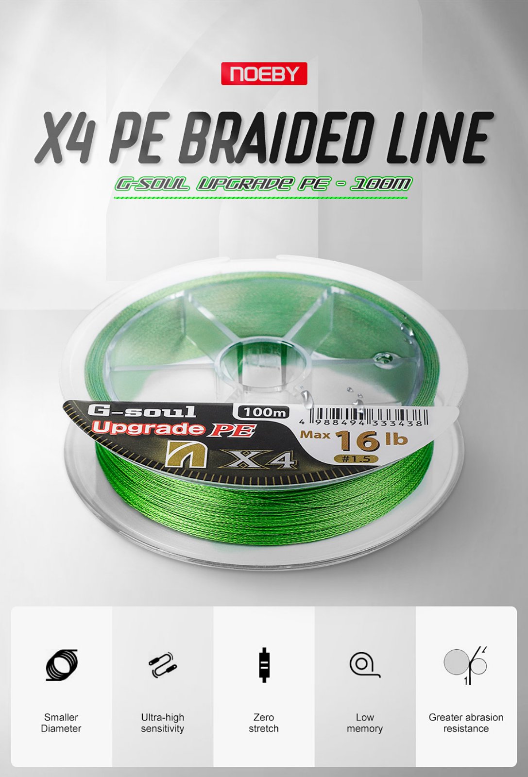 Νήμα Ψαρέματος 300m NOEBY G-SOUL x4 Light Green: Κατασκευασμένο με 100% PE νήματα, τα οποία έχουν πλεχθεί με τηντεχνολογία 4