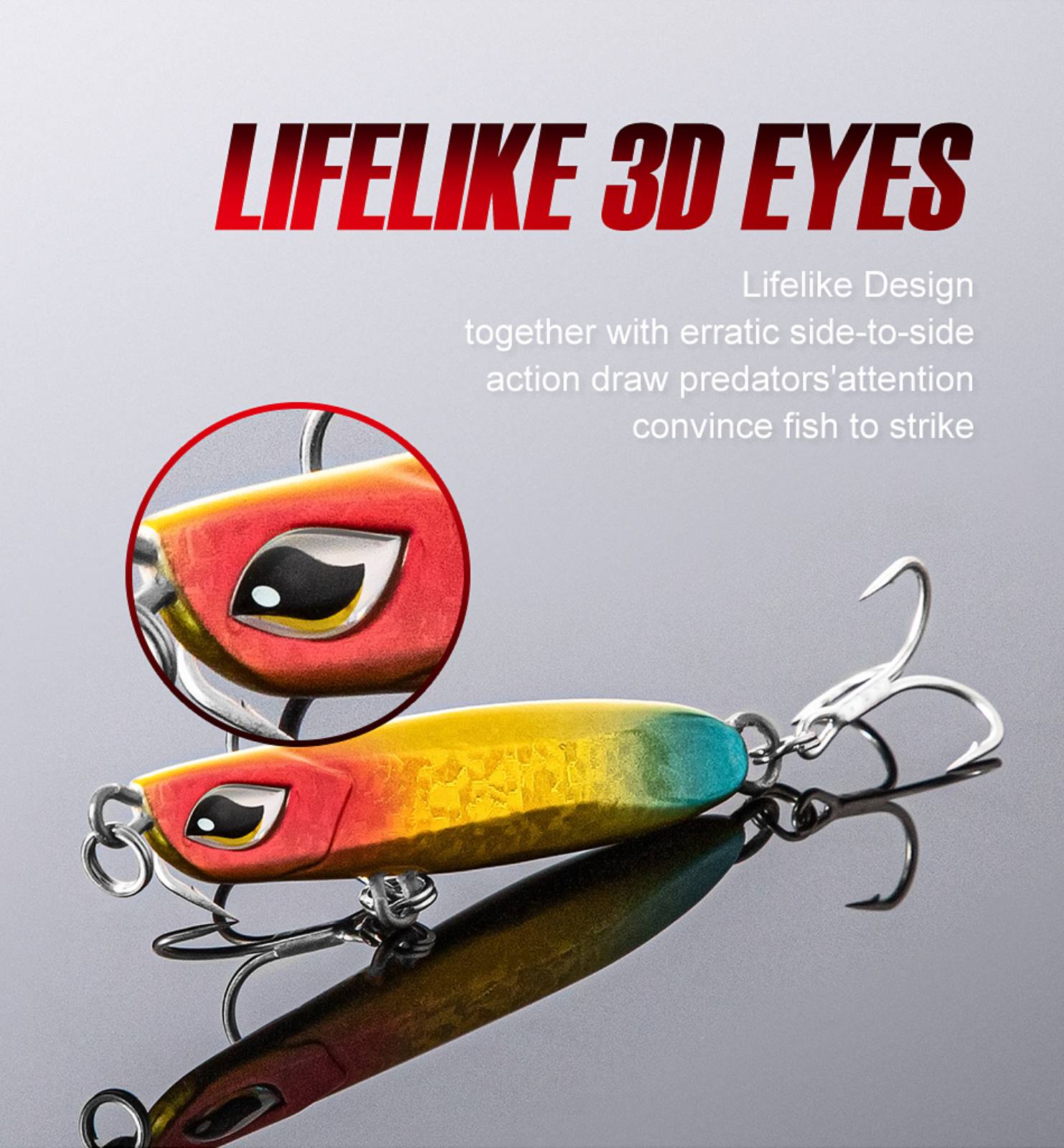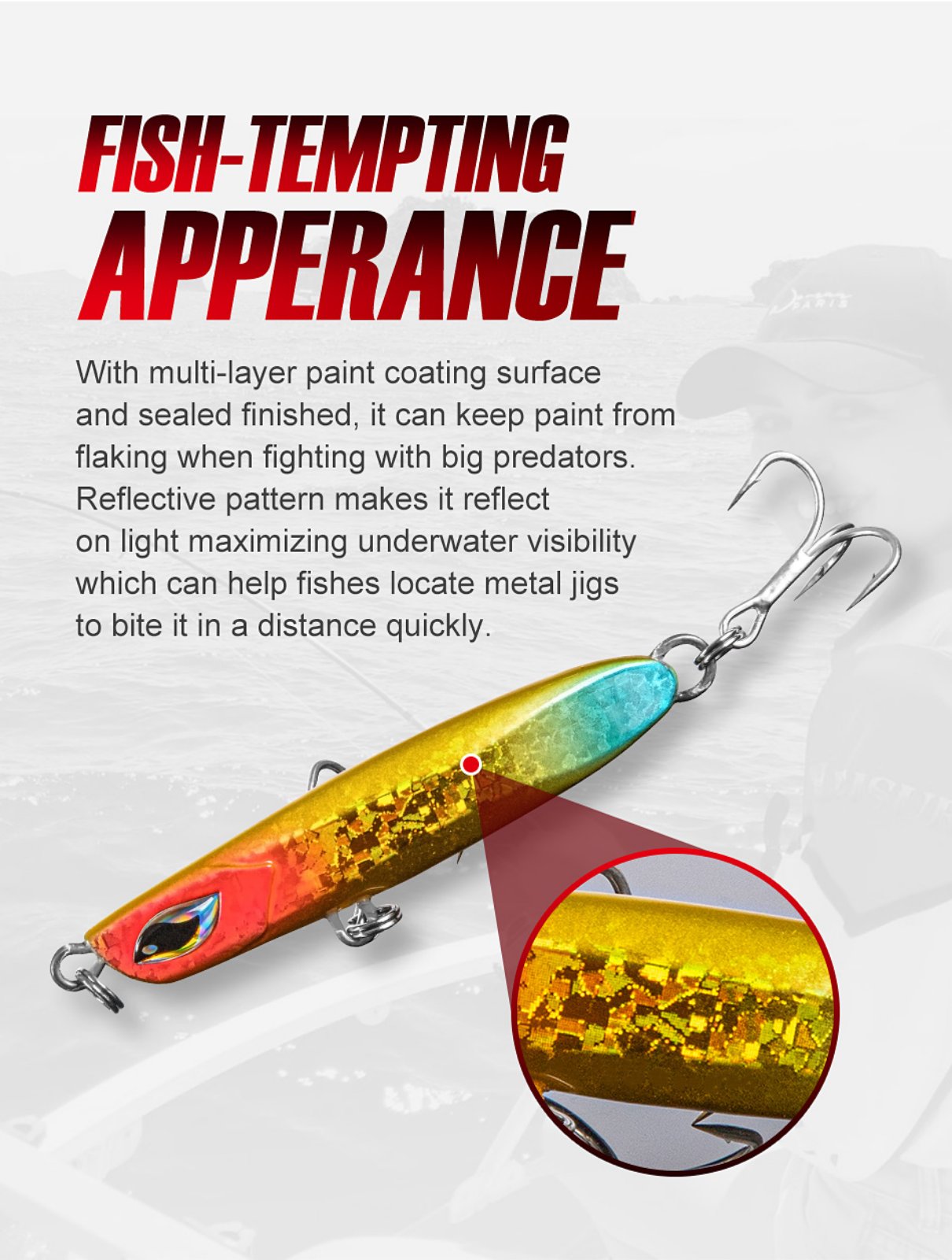 -Χρώμα πολλαπλής επίστρωσης που θα αντέξει ακόμα και τα πιο άγρια δαγκώματα απο μεγάλους θηρευτές,έντονες αντανακλάσεις που θα προσελκύσουν ότι υπάρχει στην περιοχή όταν πέσει στο νερό.
