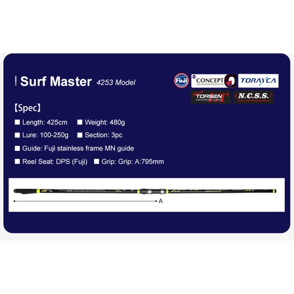 -Καλάμι NOEBY Surf Master HYBRID 4.25m C.W:100 – 250gr TORAY JAPAN CARBON Fuji Guides