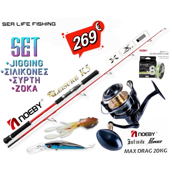 ΠΡΟΣΦΟΡΑ Σετ Ψαρέματος BIG GAME Καλάμι NOEBY Leisure K5 Jigging 1.83m C.W:120-260gr / 200-500gr και Μηχανισμός NOEBY INFINITE POWER Max Drag 20kg