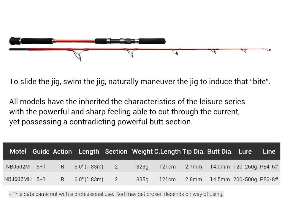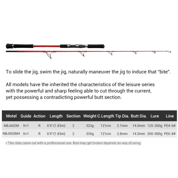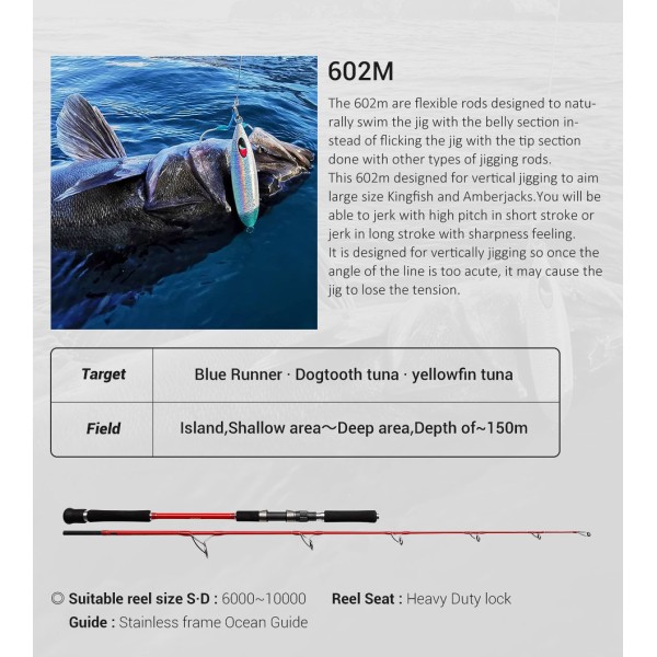 Καλάμι NOEBY K5 Leisure Jigging Rod 1.83m Jig Fishing Rod c.w:120-260g / 200-500gr For Big Game for Tuna Marlin