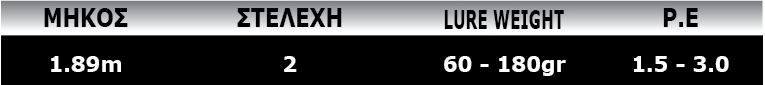 του Slow Jigging και του Jigging από τη βάρκα. Με μήκος 1,89m, είναι το ένα από τα δυο καλάμια της σειράς και
