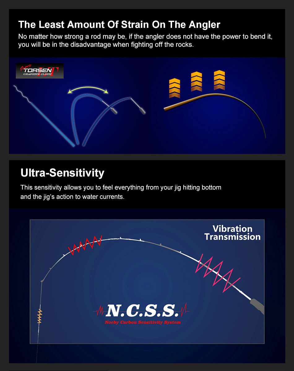 Κατασκευασμένο εξολοκλήρου από υψηλής ποιότητας Carbon N.C.S.S και τεχνολογία SUPER TORSEN LT (επικάλυψη με γραφίτη) θα μας εξασφαλίσει πολύ μεγαλύτερες βολές απο τις συνηθισμένες, μεγαλύτερη δύναμη και αντοχή, χαμηλό βάρος και εργονομική χρήση για πολύωρο ξεκούραστο ψάρεμα.