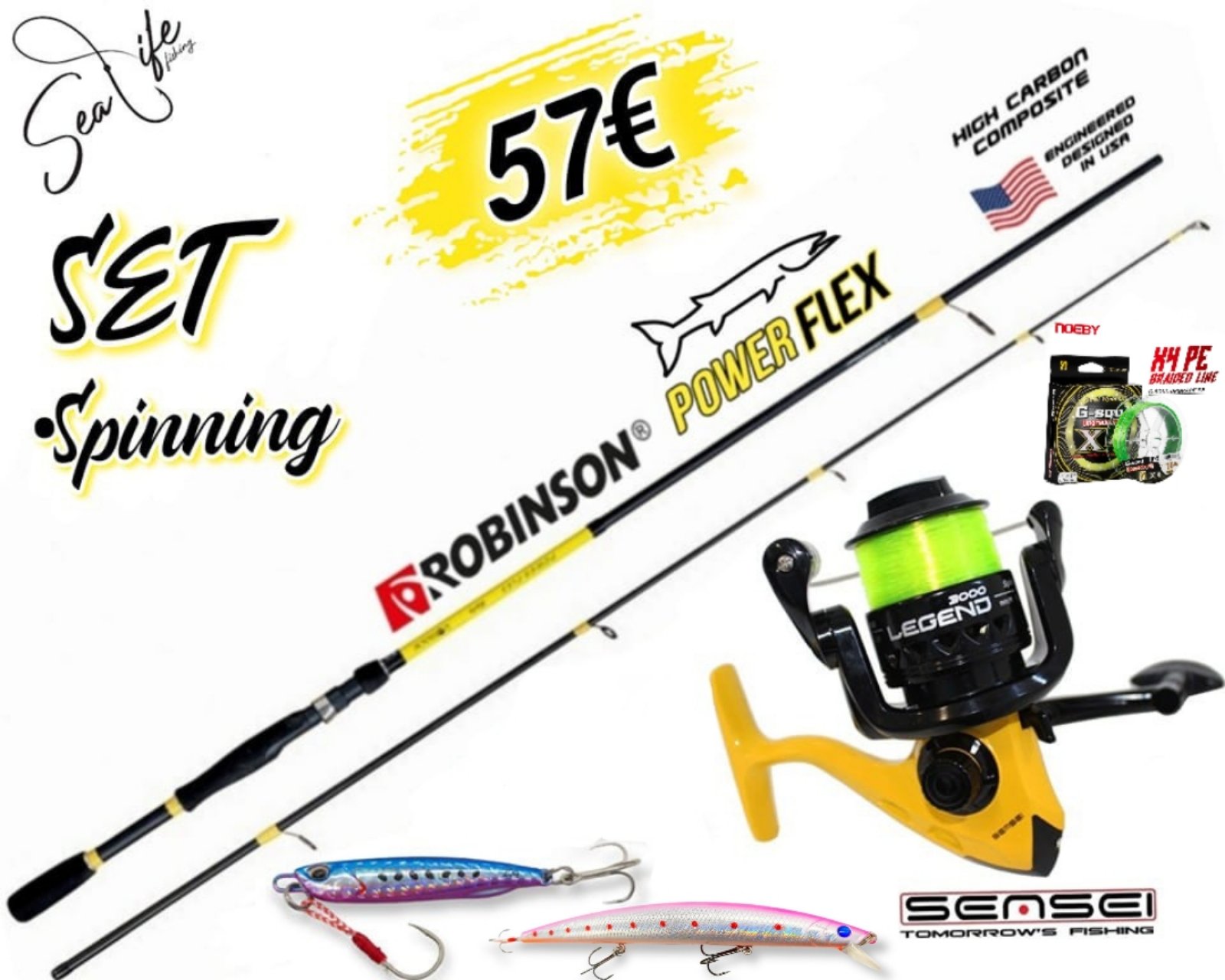 Σετ Ψαρέματος Spinning Καλάμι Robinson Power Flex και Μηχανισμό Sensei Legend
