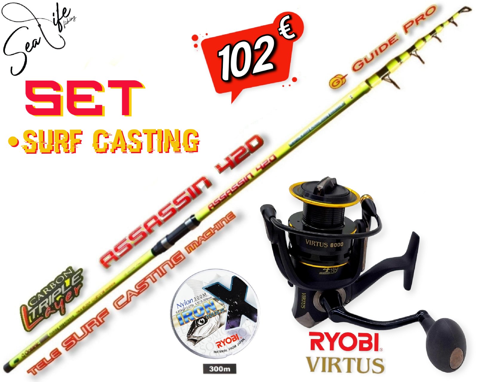 Σετ Ψαρέματος Surf Casting Καλάμι Oceanic Assasin 4.20m και Μηχανισμός RYOBI VIRTUS 7000