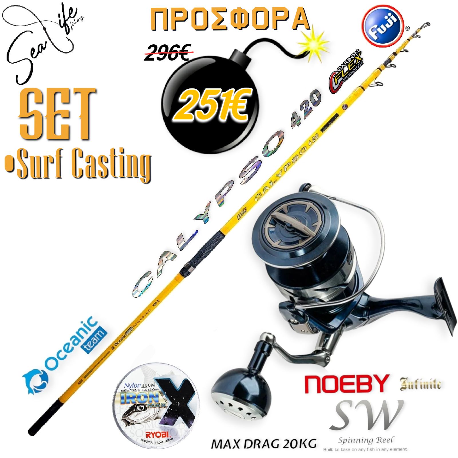 Σετ Ψαρέματος Surf Casting Καλάμι Oceanic Calypso 4.20m C.W: Max 200gr και Μηχανισμός NOEBY INFINITE SW 10000 Max Drag 20kg