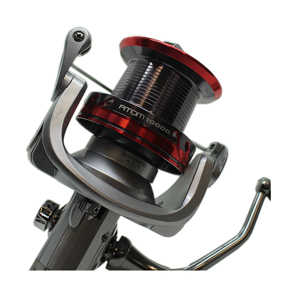 Ο Atom 10000 είναι ο νέος μηχανισμός της Oceanic Team για την τεχνική του Surfcasting και αποτελεί πραγματική πρόκληση για τους φίλους της τεχνικής! Πρόκειται για ένα μηχανισμό με πολύ καλά τεχνολογικά χαρακτηριστικά που του προσδίδουν super ομαλή λειτουργεία, με εξαιρετική βολή λόγω της κωνικής μπομπίνας και τέλειο στρώσιμο της πετονιάς. Διαθέτει φρένα που αποδίδουν 15 κιλά αντίστασης αλλά κυρίως άκρως γραμμική συμπεριφορά. Με μέγιστη αντοχή κατά της διάβρωσης από το θαλασσινό νερό, η Oceanic προίκισε τον Atom με full metal σώμα, ανοξείδωτο άξονα και ρουλεμάν.