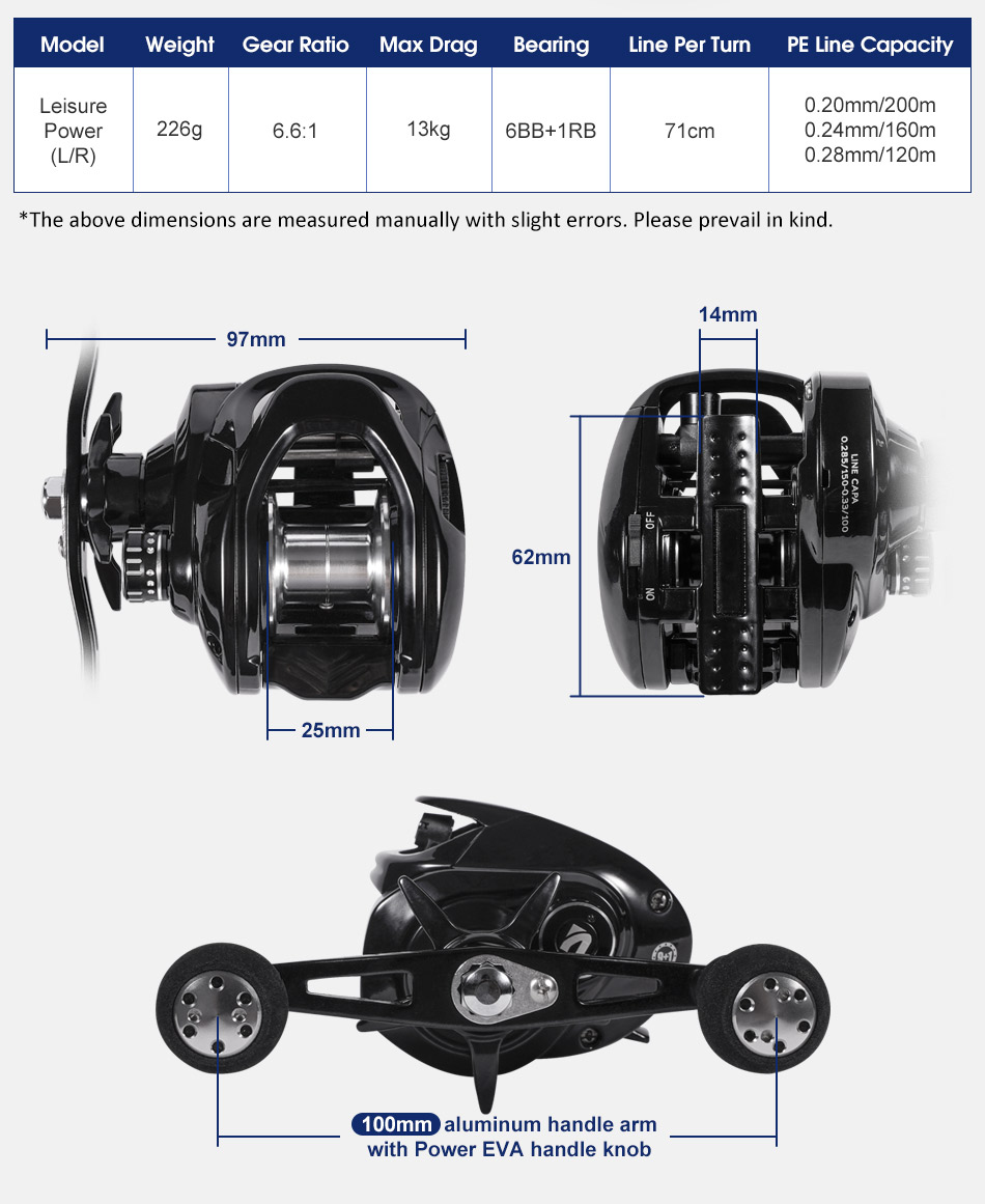 Μηχανισμός Ψαρέματος Bait Casting NOEBY Leisure Power 7.5:1 / Max Drag 13kg: