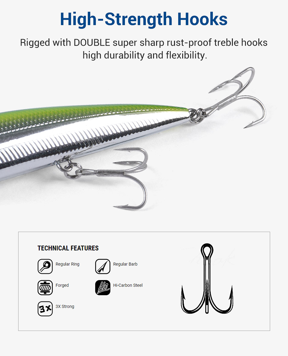 BARRACUDA 175 strong hologram effect long casting holographic effect strong construction VMC hooks stainless steel ring great action in the