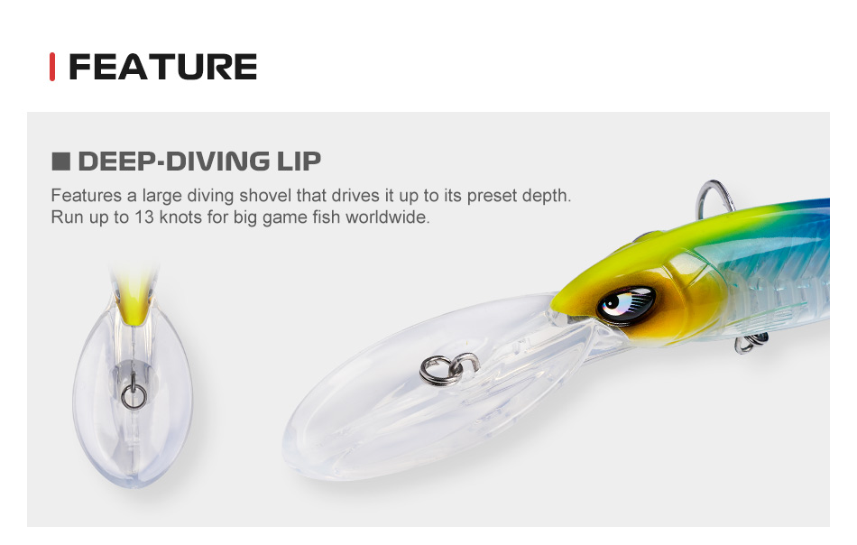 -Ειδικός σχεδιασμός σώματος και γλώσσας δίνουν στο τεχνητό απόλυτη ισορροπία και μια εντελώς αληθοφανή κίνηση που θα προκαλέσει ακόμα και τους πιο δύσπιστους θηρευτές τις περιοχής που ψαρεύουμε.