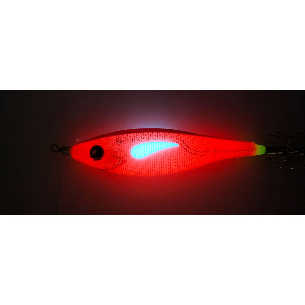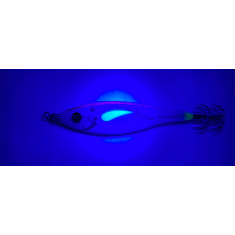 Label on the top of the product is UV active, increases visibility of product in day fishing and special label on the side of the lure is blue glow.