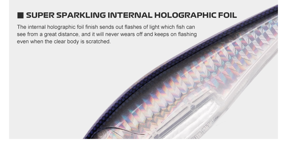 Hunthouse 150mm/77gr Trolling Minnow Holographic effect Heavy duty construction VMC hooks Stainless steel ring Great action in the sea Metallic