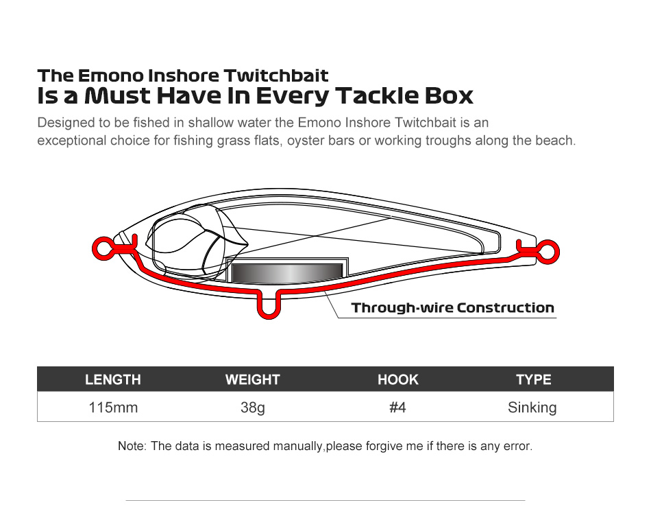 Νέο Sinking Pencil της εταιρείας NOEBY 115mm/38gr μπορεί να πιάσει τις αποστάσεις ενός πλάνου αλλά με συμπεριφορά και κινήσεις που ένας πλάνος δεν μπορεί να κάνει. Μία από τις κινήσεις αυτές είναι κατά την ελεύθερη βύθιση του τεχνητού οπού εκτελεί σε οριζόντια θέση rolling όπως ακριβώς βυθίζεται ένα ετοιμοθάνατο και χτυπημένο μικρό ψάρι. To ιδιαίτερο σχήμα του κεφαλιού surface και το χαμηλό κέντρο βάρους του μας δίνουν την δυνατότητα για απίστευτα πολλές και διαφορετικές πλεύσεις, από αργή έως και γρήγορη ανάκτηση. Έτσι λοιπόν, το jerking και το skipping επιτυγχάνεται με μεγάλη ευκολία, προσελκύοντας όλα τα πελαγικά είδη και όχι μόνο ασχέτου μεγέθους!!