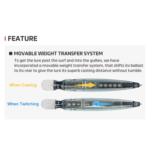 Εσωτερικό σύστημα μετακίνησης βάρους  με 5 σφαιρίδια  για μεγαλύτερες βολές και ελκυστικούς ήχους στο βυθό.