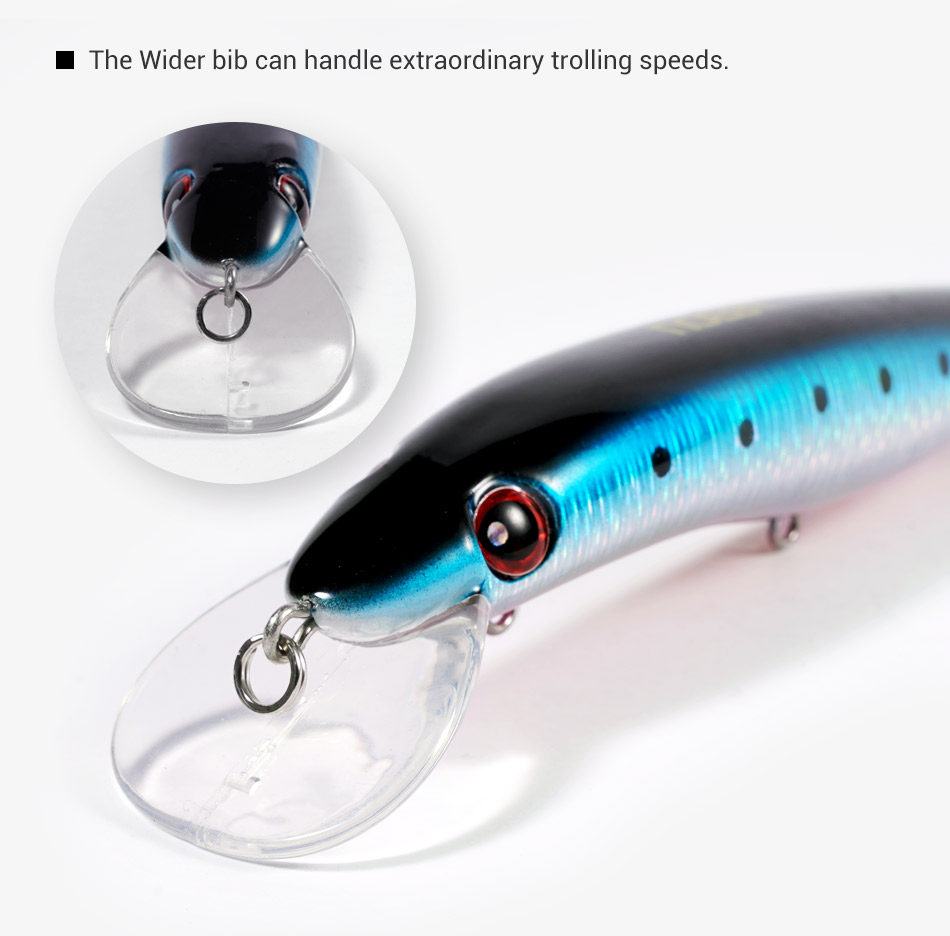 Η γλώσσα του είναι ειδικά σχεδιασμένη έτσι ώστε να δίνει στο minnow  ελεγχόμενη σταδιακή βύθιση και σταθερή κίνηση με βάθος πλεύσης εώς και τα 3 μέτρα και με ταχύτητα σκάφους από 1 εως 7 κόμβους.