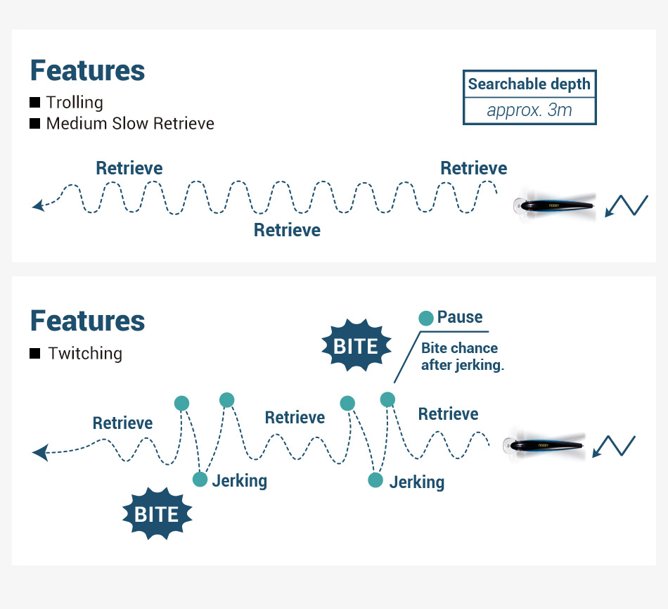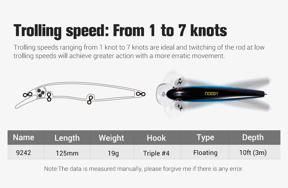 Το Νέο Minnow NOEBY Shallow Trolling  είναι ένα τεχνητό που μπορεί να χρησιμοποιηθεί για την τεχνική του spinning αλλά και της Συρτής Αφρού απο σκάφος