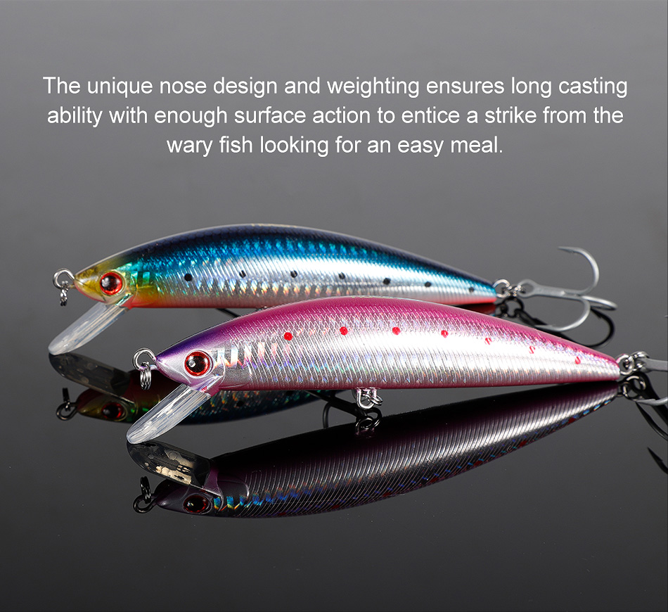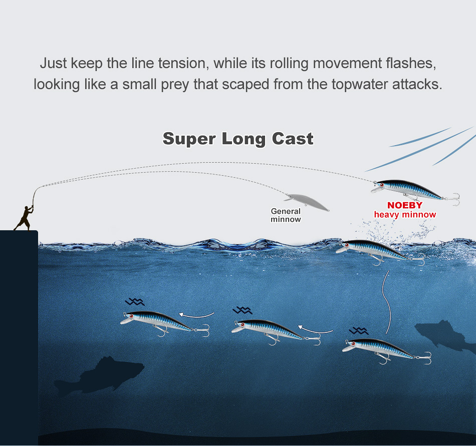 Super long cast heavy minnow●Enables to cover distant point and very deep area where ordinary minnow can’t reach.●Versatile heavy sinking