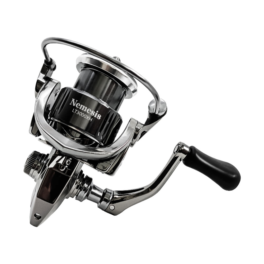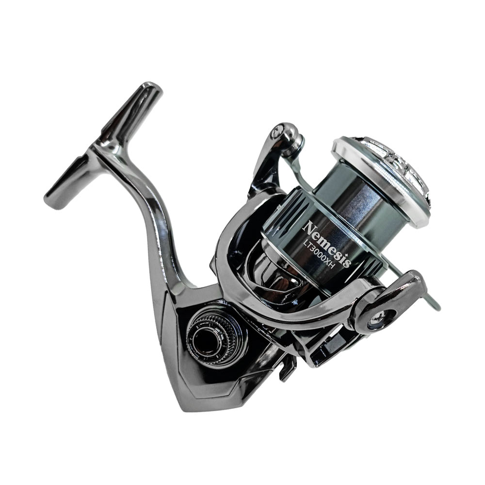 O Nemesis LT3000XH είναι η πρόταση της Oceanic Team για όσους θέλουν ένα spinning μηχανισμό με χαρακτηριστικά που καλύπτουν 100% τις ανάγκες μας στο δύσκολο κόσμο του ψαρέματος με τεχνητά δολώματα! Στο spinning χρειαζόμαστε ομαλή λειτουργία για να αισθανόμαστε την κίνηση του τεχνητού οπότε ο Nemesis διαθέτει μανιβέλα που βιδώνει απευθείας στο σώμα, 5+1 ρουλέμαν και γρανάζια CNC CUT που όλα μαζί προσδίδουν μια smooth λειτουργία ακόμα και κάτω από σκληρή χρήση. Οι πολλές και επαναλαμβανόμενες ρίψεις αλλά και τα βίαια Jerks ταλαιπωρούν το πικ-απ (bail arm) οπότε το στιβαρό (Thick Bail) και με αξιόπιστο ελατήριο πικ-απ του μηχανισμού εγγυάται ότι δεν πρόκειται να ασχοληθούμε ποτέ με αυτό το θέμα. Στις ρίψεις βοηθάει πολύ και η καινοτόμος σχεδίαση της μπομπίνας με σχετικά μακρόστενο σχήμα ώστε το νήμα να φεύγει απρόσκοπτα ακόμα και όταν οι ταχύτητες είναι μεγάλες. Επίσης η μπομπίνα είναι ρηχή ώστε να χωράει άνετα 150m νήμα ΡΕ #1.0, χωρίς προσθήκη έξτρα πετονιάς από κάτω. Τέλος, στο spinning χρειαζόμαστε γραμμικά φρένα με ομαλή ροή -χωρίς σκορτσαρίσματα- και τα 6kg του Nemesis είναι απόλυτα ικανοποιητικά, χωρίς τρομερές απώλειες αλλά και χωρίς «τρύπες» σε όλες τις ρυθμίσεις τους. O Nemesis είναι ένας αξιοπρεπέστατος μηχανισμός για το spinning που όπως η Θεά Νέμεσις… τιμωρεί την αλαζονεία όσων πιστεύουν ότι χρειάζονται πολλά λεφτά για να βγάλεις ψάρια στο spinning!!