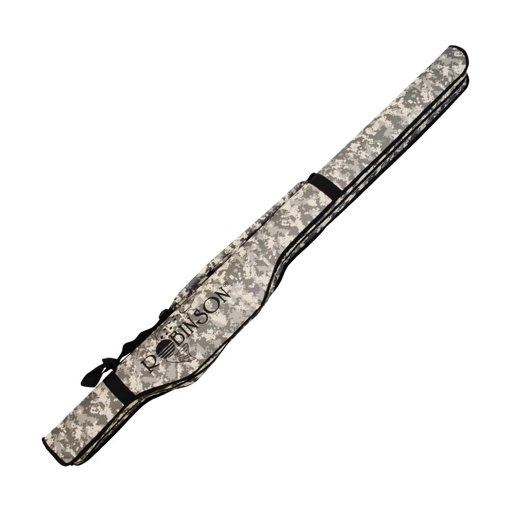 Σκληρή θήκη μεταφοράς καλαμιών, σε χρώμα παραλλαγής, από την Robinson. Είναι κατασκευασμένη από σκληρό ποιοτικό υλικό, ανθεκτικές ραφές, ιμάντες με μαξιλάρι και μεγάλα φερμουάρ. Ιδανική για μεταφορά καλαμιών εως 170cm μαζί με τον μηχανισμό τους.