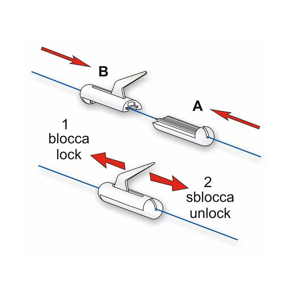 Ειδικό συρώμενο Bait clip για γρήγορη τοποθέτηση από την Stonfo. Περνάτε πρώτα το κάτω μέρος στην πετονιά και στην συνέχεια κουμπώνετε το πάνω μέρος Το σημείο που συγκρατεί το αγκίστρι λειτουργεί και σαν σφήνα ώστε να μετακινείται εύκολα πάνω κάτω. Διατίθεται σε δυο νούμερα για διαφερετικές διαμέτρους πετονιάς: No1 0.15mm – 0.35mm και 0.40mm – 0.60mm. Διατίθεται σε συσκευασία των 10 τεμαχίων.